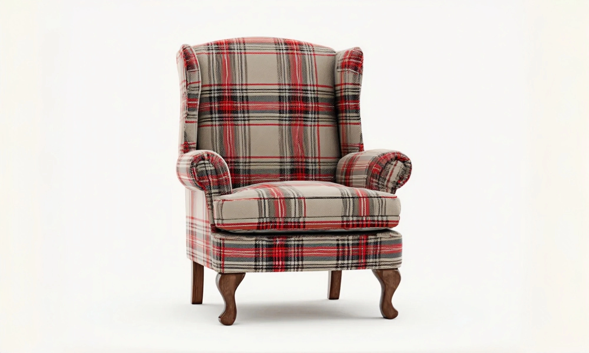 Poltrona con schienale alto in tessuto scozzese 82x78x105 cm - multicolore - per soggiorno - stile classico