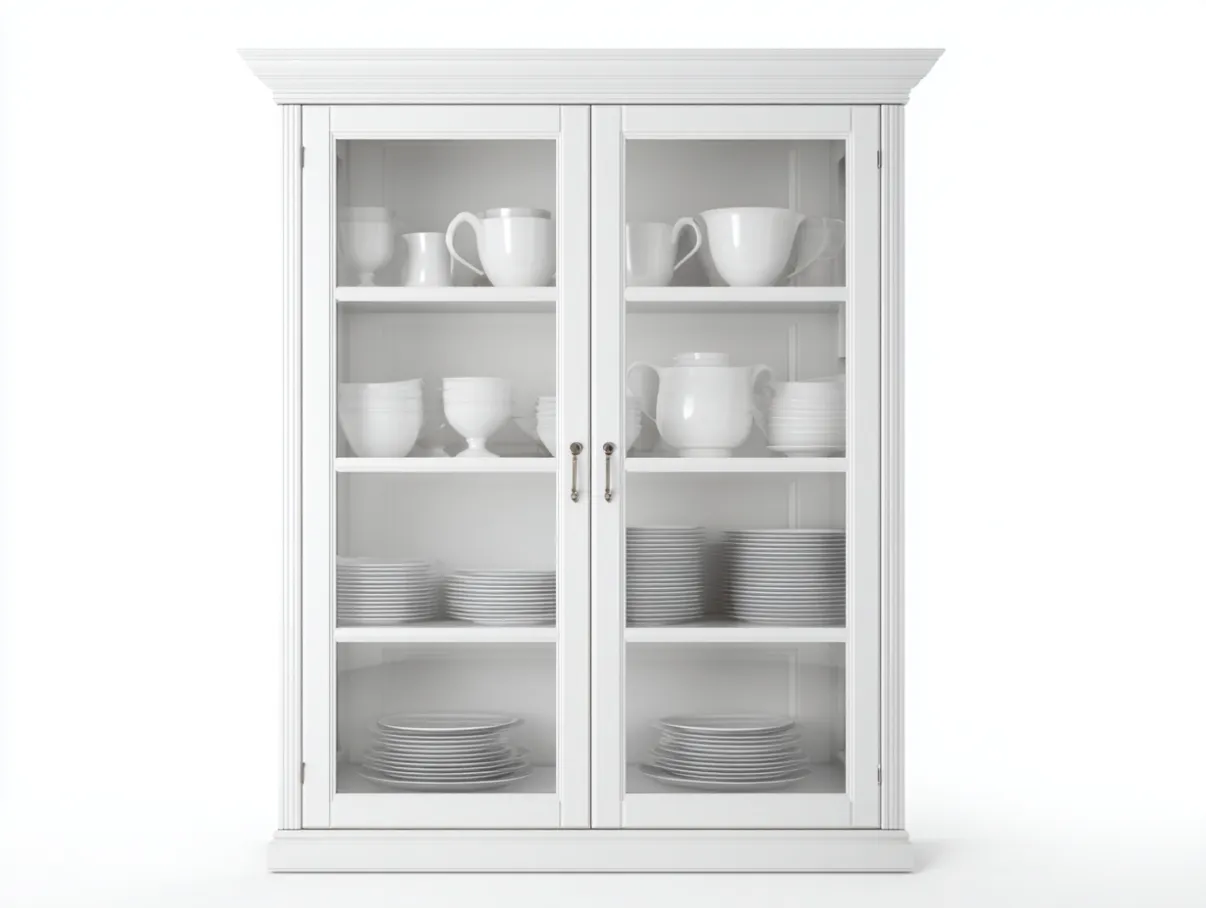 Vetrina elegante per il soggiorno, ideale per esporre oggetti decorativi e stoviglie, con struttura funzionale e design sobrio, adatta a diversi stili di arredamento domestico.